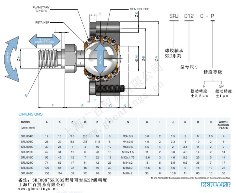 SRJ016C HEPHAIST球鉸軸承 用于自由度平臺